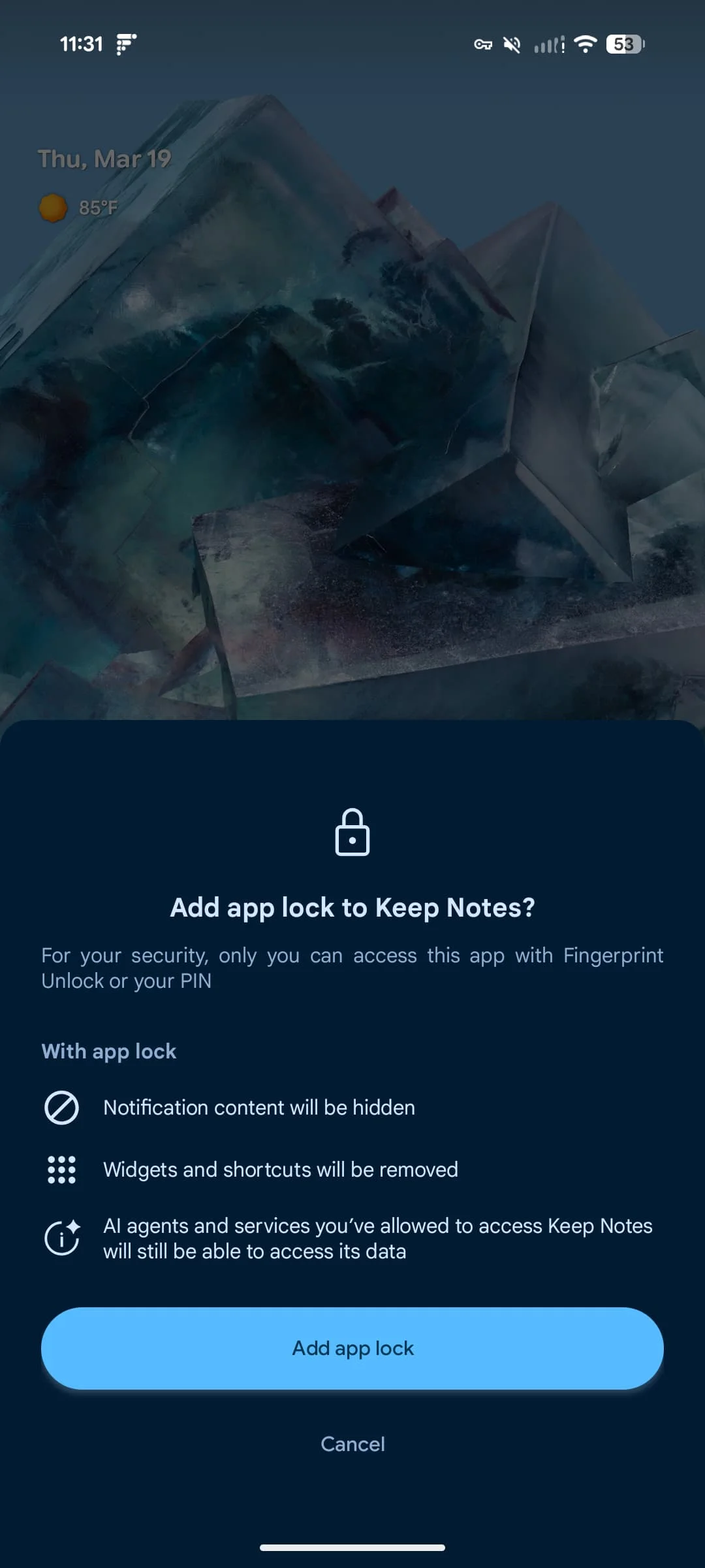 Long-pressing on an app will reveal the new App lock and Bubble options, with the latter officially announced last month as part of Android 17 Beta 2. It’s fully active as of today’s Canary.