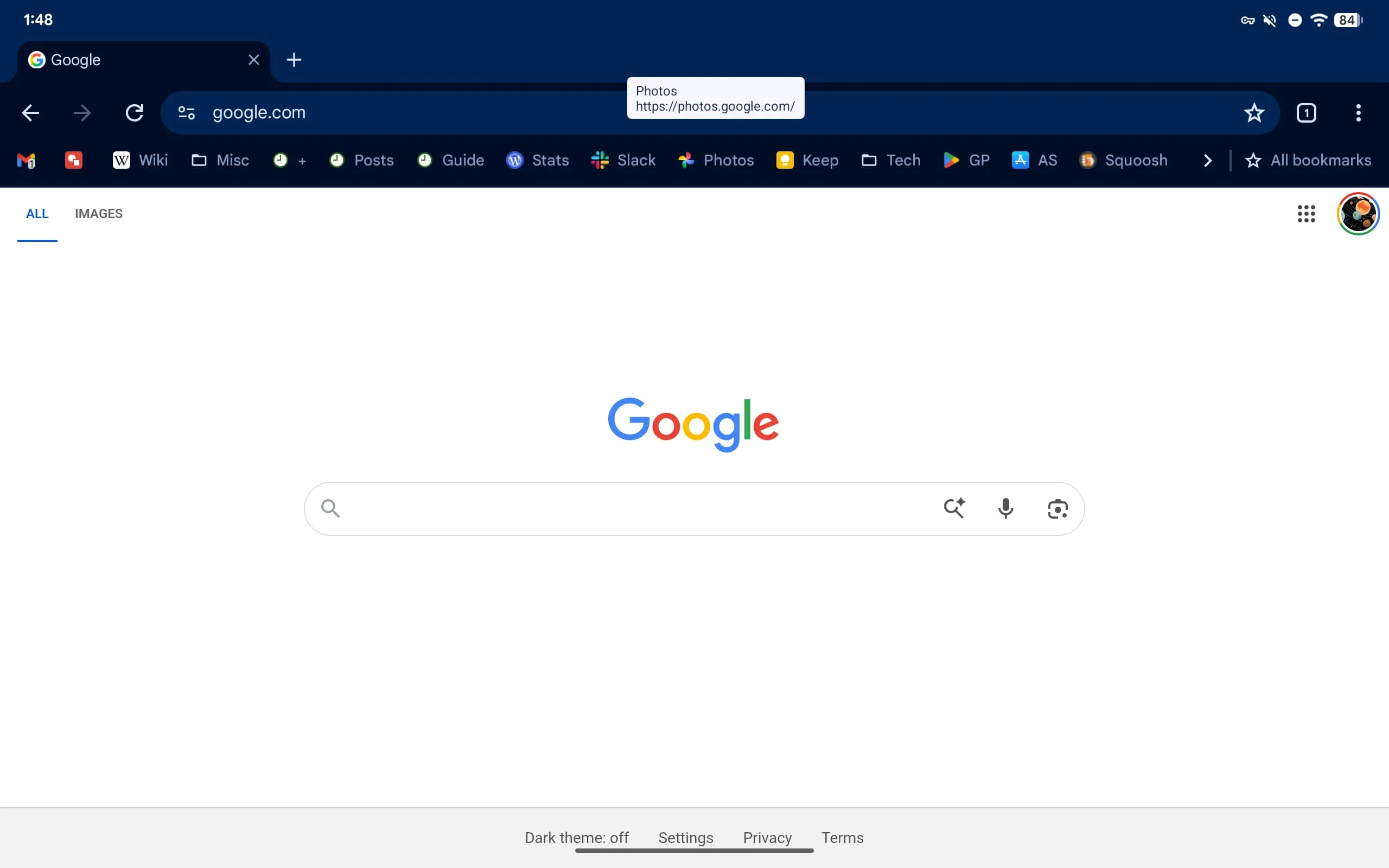 A right-facing chevron at the end lets you view bookmarks that don’t fit, like folders, while “All bookmarks” opens the existing fullscreen browsing interface. Long-pressing on a bookmark will show the full URL.